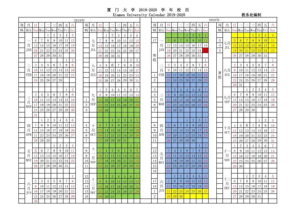 Xiamen University follows a tri-semester academic calendar, with autumn, spring and summer semesters as follows: