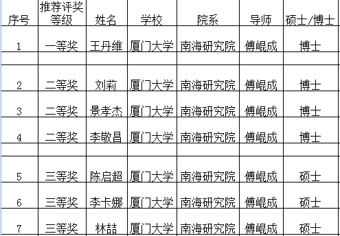 根据2015年中国南海研究协同创新奖学金评选相关规定与标准,经本人自主申请,本着公平、工正、公开的原则,经学院奖学金评定小组讨论,现将奖学金评定结果公示如下。