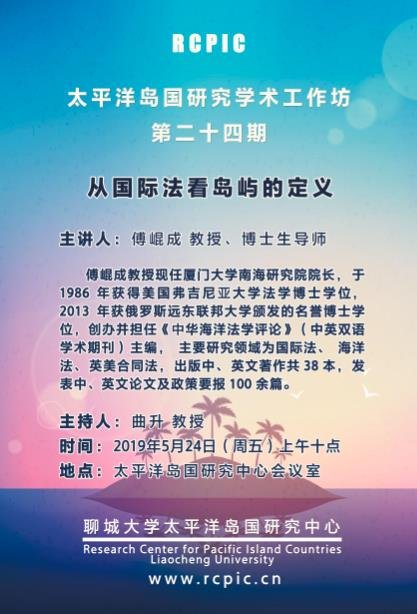 发布时间: 2019-05-23 | 阅读数:讲座题目:太平洋岛国研究学术工作坊第二十四期——从国际法看岛屿的定义