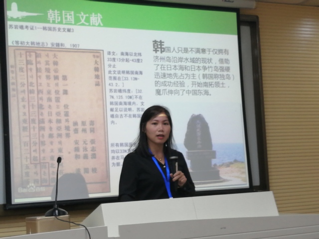 我院郝会娟博士后在“海洋战略讨论组”的分组报告中,做了题为《论韩国对苏岩礁的政策对维护我国海洋权益的影响》的报告。