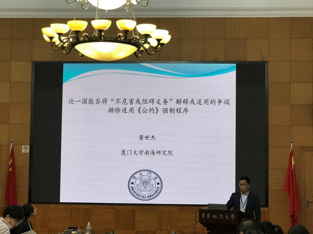 我院师生所做的报告均取得了良好的反响,并且董世杰助理教授所提交的会议论文《论一国能否将“不危害或阻碍义务的争端”排除适用〈公约〉强制程序》和郝会娟博士后所提交的会议论文《论韩国对苏岩礁的政策对维护我国海洋权益的影响》,分获此次论坛征集论文二、三等奖。