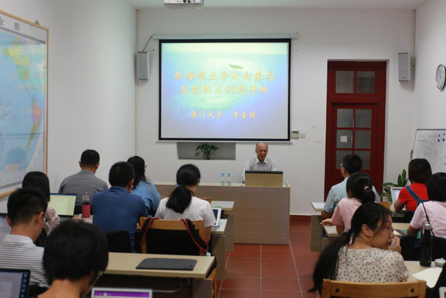 发布时间: 2019-10-17 | 阅读数:2019年9月15日(周二)19:00,厦门大学南海研究院李金明教授在南安楼213教室为我院师生带来了一场题为“南海领土争议由来与当前热点问题评析”的主题讲座。讲座由厦门大学南海研究院副院长施余兵教授主持,南海研究院林蓁助理教授、董世杰助理教授、郝会娟博士后,部分博士生、硕士生及来自其他学院的多位厦大师生参加了此次讲座。