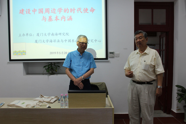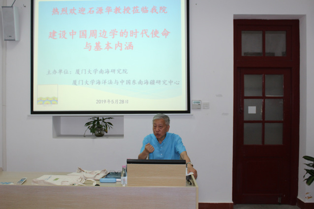 发布时间: 2019-05-29 | 阅读数:2019年5月28日晚,复旦大学特聘教授、博士生导师石源华老师为我院师生带来了一场题为“建设中国周边学的时代使命与基本内涵”的讲座。本次讲座由厦门大学南海研究院傅崐成教授主持,厦门大学南海研究院张克宁教授、郝会娟助理教授、董世杰助理教授等教师及南海研究院部分硕士生参加了此次讲座。