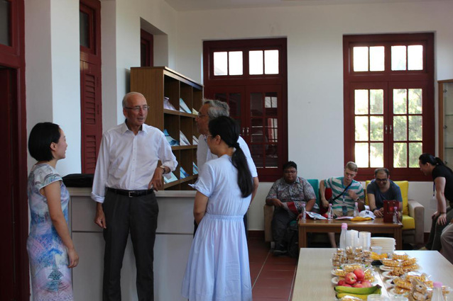 厦门大学南海研究院张克宁教授首先致欢迎茶会开幕辞。张教授对学员的到来表示欢迎,并介绍了南海研究院近期的人事变动情况。受南海研究院院长宋方青教授的委托,张教授给学员们介绍了厦门大学、南海研究院以及暑期班的概况和历史沿革;并介绍了第一周授课专家Helmut Tuerk大使的学术背景及其曾担任奥地利驻美利坚合众国大使、罗马教廷大使等国际履职的经历,并且祝愿每位学员在厦门能有一段愉快而难忘的经历。本次暑期班第一周的授课专家前国际海洋法法庭法官、副庭长Helmut Tuerk大使也表示十分荣幸能来到厦门大学南海研究院,并将为学员们带来“海洋法-热点问题”的系列课程,希望同学们能在此次暑期班的学习中有所收获。厦门大学南海研究院施余兵教授则对学员在厦期间的学习和生活提出了一些建议,表示南海院的同事和学生志愿者随时准备给暑期班以及各位学员提供后勤保障和各种协助,并预祝本次暑期班的课程开展一切顺利。