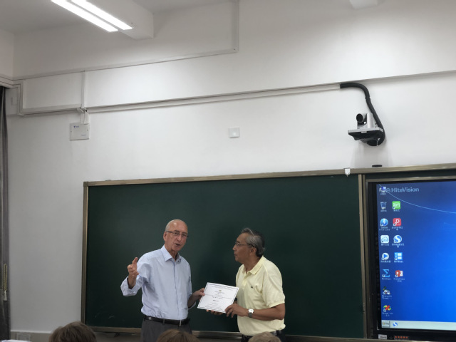 7月5日课后,厦门大学南海研究院张克宁教授代表学院为Helmut Tuerk大使颁发了授课证书,代表暑期班的师生们对Helmut Tuerk大使的殷殷教诲表示感谢,第一周的课程圆满结束。
