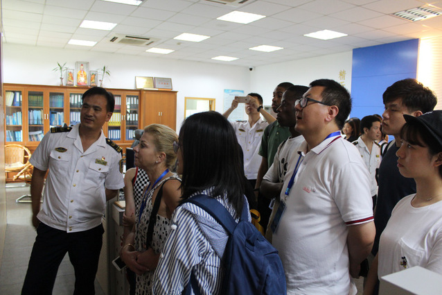 在随后的互动环节中中,暑期班第一周授课嘉宾、香港理工大学李耀光教授结合自己多年的海事实务经验,与海事局专家就诸多常见问题、香港和内地的海事实践异同等进行了深入的探讨。来自孟加拉国、俄罗斯、美国、澳大利亚等国学员,结合本国海事实践,提出了很多值得思考的问题。随后,在船长的带领下,学员们现场参观了VTS值班室,对于一些感兴趣的问题,船长都给予了详细的解答。