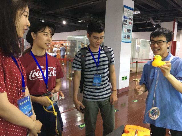 在参观过程中,志愿者们通过生动形象的讲解,让学员们在轻松愉悦的学习环境下不仅学到了丰富的海洋科学知识,更开拓了视野、增长了见识。