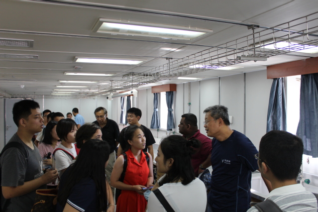 随后,王海黎副院长还带领学员们还参观了“嘉庚”号的食堂、休息室、会议室等等。学员们在参观的同时和王海黎副院长进行积极的提问交流,过程气氛活跃。