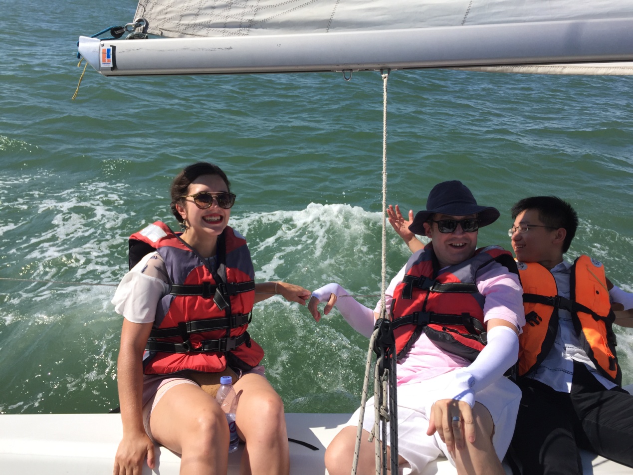 7月14日(周五)下午,马可•波罗-郑和国际海洋法律与政策暑期班学员应厦门大学校友运营的帆船公司之邀,前往五缘湾游艇中心体验帆船。蓝天白云下的扬帆起航,来自内陆的学员初识大海,对海洋的亲近感油然而生,瞬间体会到海洋的无穷魅力。帆船上学员们喜悦地交流,纷纷倾诉着第一次体验帆船的感受。南海研究院负责带队的施余兵副教授、历丽老师,亲切地告诉学员,学习海洋法、学习海洋政策应该从理论走向实践,了解海洋、走进海洋。学员们在轻松愉悦的氛围中结束了本周的学习和参访。