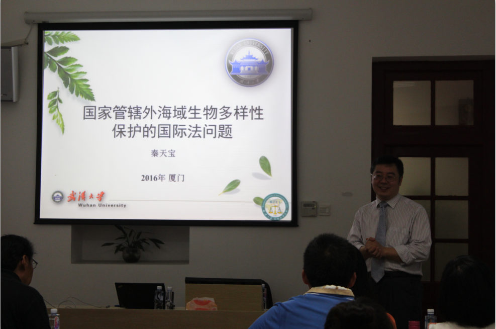 发布时间: 2016-10-28 | 阅读数:2016年10月27日,武汉大学法学院珞珈特特聘教授、武汉大学法学院副院长、武汉大学环境法研究所所长、中国环境资源法学研究会秘书长秦天宝,在我院做了题为“国家管辖外海域生物多样性保护的国际法问题”的讲座。