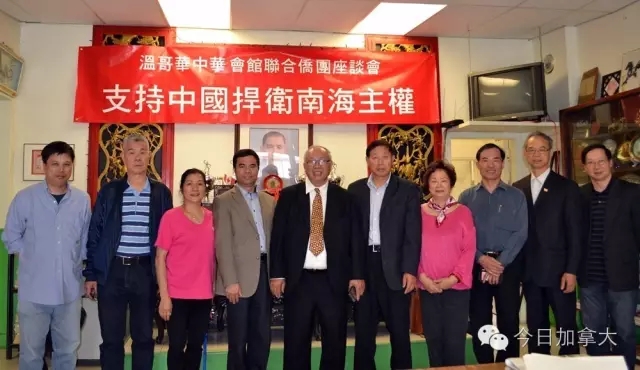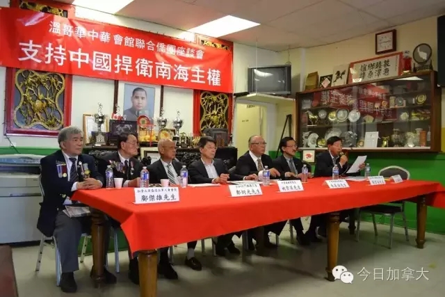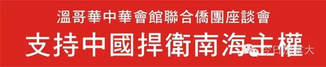 温哥华中华会馆联合大温哥华数十家华人社团代表于2016年5月14日周六下午在温哥华中华会馆召开有关“支持中国捍卫南海主权座谈会”,与会代表一致同意以下严正声明:
