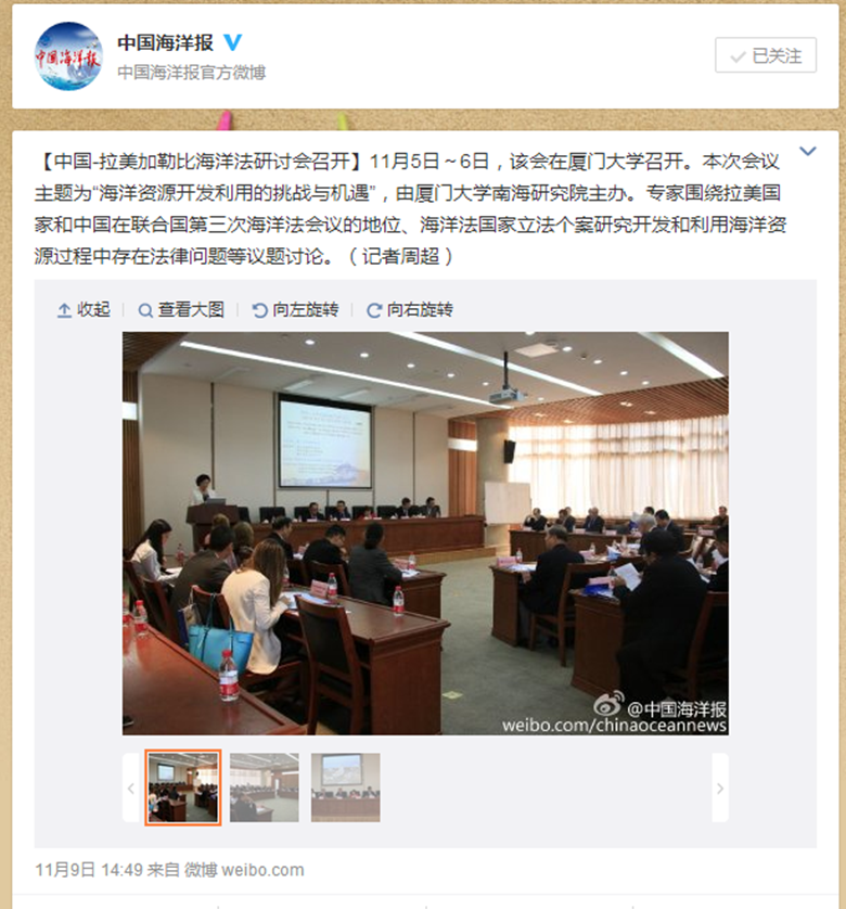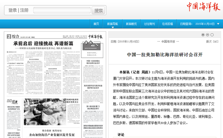 《中国海洋报》刊发我院举办中国-拉美加勒比海洋法研讨会新闻