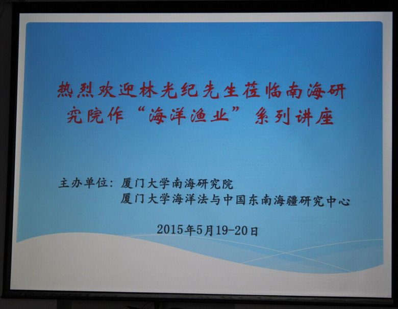 发布时间: 2015-05-22 | 阅读数:5月19日至20日,应我院邀请,福建省海洋与渔业经济研究会会长林光纪先生在我院成功举办了“海洋渔业”系列讲座。该系列讲座分别为“新政下海洋渔业的生产要素变化与法律调整”、“海洋渔业的生产经营组织演变与法律政策调整”、“我国远洋渔业发展困境的法律解局”。我院傅崐成院长担任主持,张克宁教授、李红云教授、青年教师及广大学生参加了此次讲座。