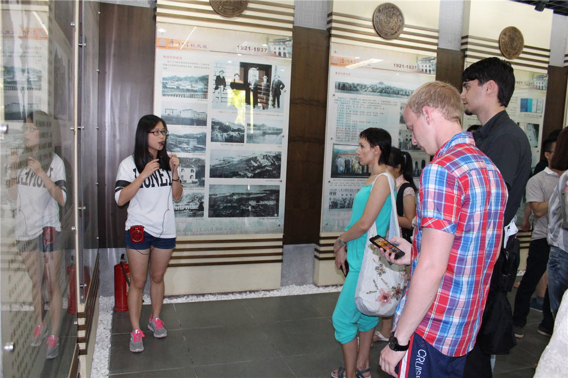 7月6日,学员们在历丽老师带领下游览闻名遐迩的厦大校园,一路且笑且行,风景如画。从古典与现代相结合的厦大标示性建筑建南大礼堂开始,沿途参访至人类学博物馆,该馆是联合国教科文组织认定的著名博物馆,也是中国大陆唯一的一所人类学专科博物馆。在此学员们参观展品、听取讲解,掌握人类及其文化的进化历程,了解中国东南区文化和南洋文化。随后学员们参观校史馆,在公共管理学院志愿者的英文讲解下,深入了解厦大的建校史、杰出校友和校园文化。学习知识,也享受生活,走在林荫下,一路游览秀丽如画的芙蓉湖、颂恩楼、思源谷等著名景点。