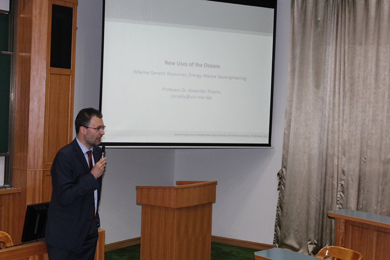 3月19日晚,Alexander Proelss教授以“Energy and Marine Genetic Resources”为主题讲授了现代国际法对海洋能源及海洋遗传资源的界定及规制。3月20日晚,Alexander Proelss教授以“Marine Geoengineering”为主题介绍了Marine Geoengineering 发展的背景、现状,以及与现代海洋法的关系。