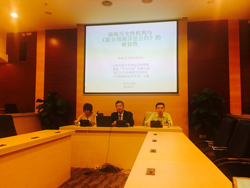发布时间: 2015-05-11 | 阅读数:复旦大学文科科研处携手复旦发展研究院、上海高校智库研究和管理中心,在复旦大学110周年校庆推出了“智库月”系列讲座。厦门大学南海研究院院长傅崐成教授受邀做“智库月”系列讲座的首发演讲。以“中国海洋战略:三个层级的法律问题”为主题,傅崐成教授就南海历史性权利与《联合国海洋法公约》的相容性,于5月7日下午在复旦大学美国研究中心,为到场师生带来一场专题讲座。