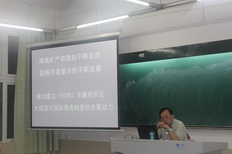 吕教授阐述了《联合国海洋法公约》大陆架制度,介绍了大陆架划界案及大陆架界限委员会面临的挑战。