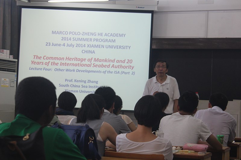 发布时间: 2014-07-02 | 阅读数:2014马可·波罗—郑和高等研修班第一周课程从6月23日开始,至6月27号圆满结束。暑期班第一周课程由南海研究院教授张克宁教授进行讲授,课程主题为Common Heritage of Mankind and 20 Years of the International Seabed Authority(论人类共同继承财产与国际海底管理局20年)。