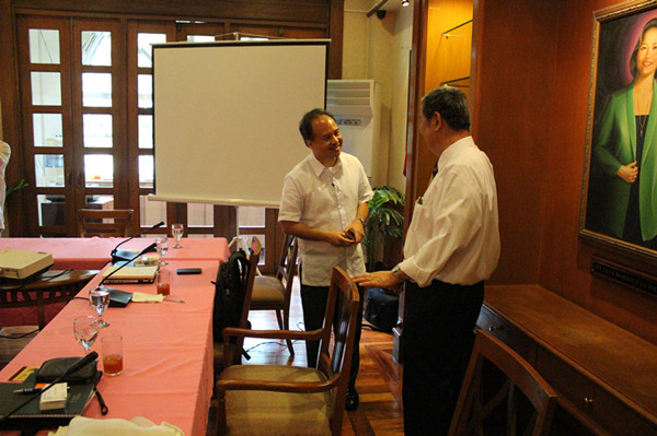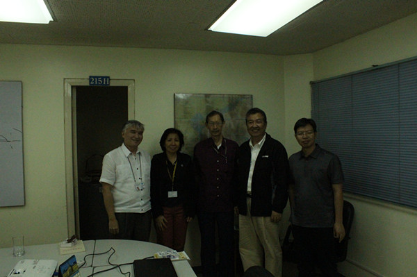2013年8月27日下午,厦门大学南海研究院代表团在菲律宾大学海洋科学研究院,与Marie Antonette Juinio-Meñez主任、Edgardo Gomez教授、Gil Jacinto教授等举行了会议,共同讨论了具体落实厦门大学-菲律宾大学合作协议、海洋科学方面未来合作等事宜。