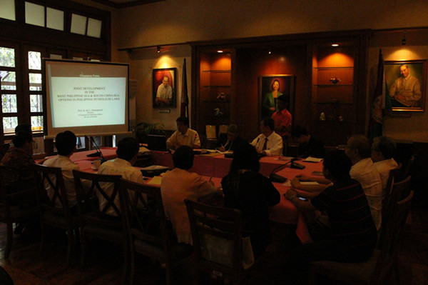 2013年8月28日上午,在菲律宾大学法学院二楼会议室举行了关于中菲资源联合开发小型研讨会,Jay Batongbacal助理教授、傅崐成教授、刘志云教授先后做主题报告,与会者就相关主题进行了热烈讨论,整个会议持续近4小时,会议取得了圆满成功。
