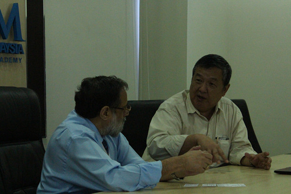 2013年8月26日晚,在正在Maritime Institute of Malaysia(MIMA)进行访问的我院客座教授Forbes教授的陪同下,傅崐成教授、刘志云教授先后与MIMA的高级研究员Nazery Khalid
