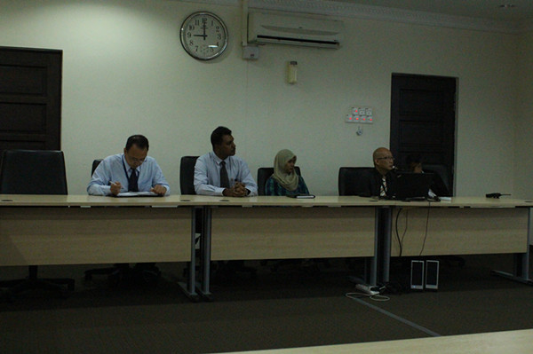 2013年8月26日下午,南海研究院代表团在马来西亚大学法学院与马来西亚大学法学院院长Johan Shamsuddin Sabaruddin博士、副院长Abdul Samad Abdul Ghani博士、副院长Norbani Mohamed Nazeri举行了会谈。就共同举办学术会议,学者交流互访达成了基本共识。