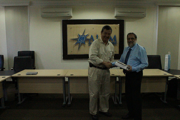 ALAM合作发展部高级经理Wong Koon Sang(右一)在对ALAM进行介绍