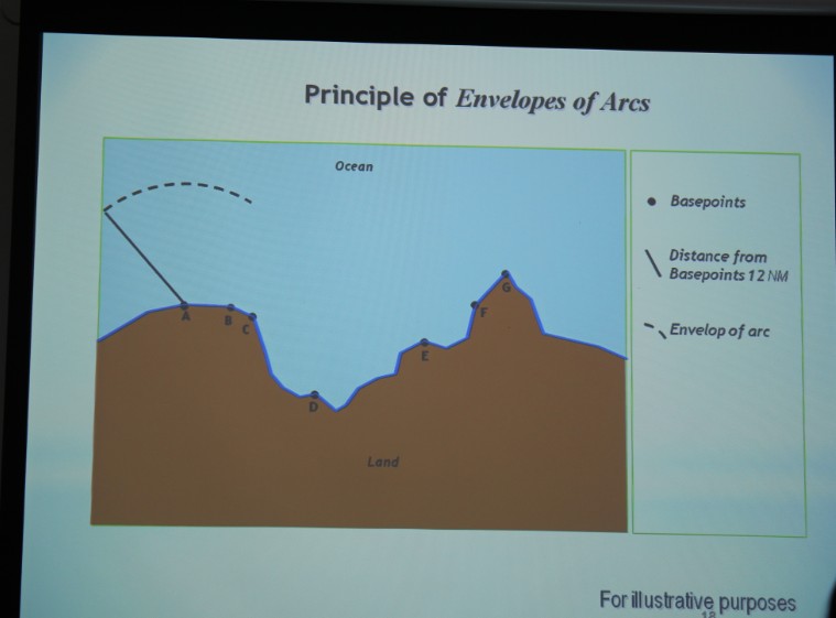 Forbes教授首先介绍了《联合国海洋法公约》中航海图在海疆划分中的作用,其次阐述了《联合国海洋法公约》中关于潮位不同情形下的规定,最后Forbes教授向我们分析了海疆划分的几何应用并提出了自己的看法。