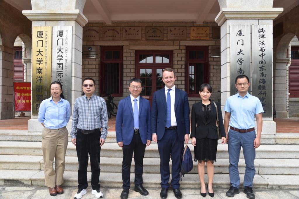 发布时间: 2020-10-30 | 阅读数:10月29日上午,英国驻华大使馆二等秘书柯正飞先生(Mr. Philip Cattle)一行访问厦门大学南海研究院,在南安楼211室开展座谈交流。厦门大学南海研究院副院长施余兵教授,厦门大学法学院海洋和军事国际法研究中心主任陈喜峰副教授,南海研究院林蓁副教授、董世杰助理教授,英方秘书兼翻译,厦门市政府外事办公室代表,厦门大学国际合作与交流处代表出席了本次座谈。会议由施余兵主持。