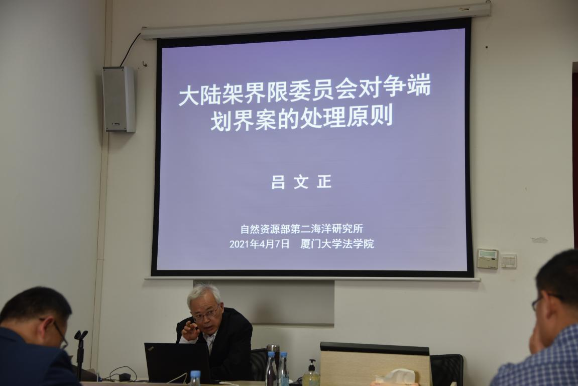 发布时间: 2021-04-09 | 阅读数:2021年4月7日(周三)15:30-17:30,联合国大陆架界限委员会前委员、自然资源部第二海洋研究所研究员、海洋地球物理学家吕文正教授,在厦门大学南安楼213教室,做了题为“大陆架界限委员会对争端划界案的处理原则”的讲座。本次讲座由厦门大学南海研究院副院长施余兵教授主持,南海研究院师生参加了此次讲座。