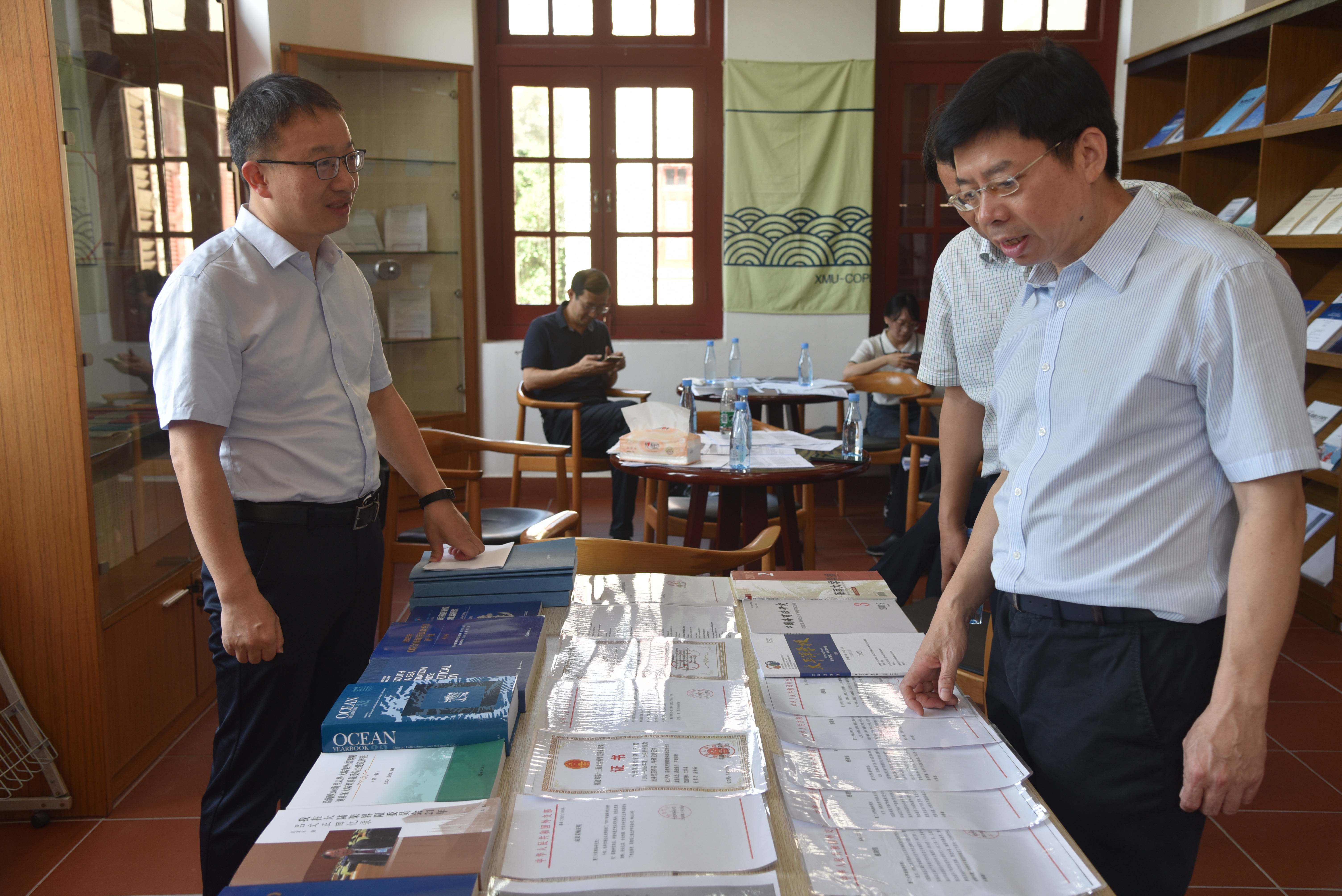 发布时间: 2021-05-14 | 阅读数:5月13日上午,福建省社科规划办和福建省社科研究基地考核专家组一行莅临厦门大学海洋法与中国东南海疆研究中心实地考察。省社科联党组成员、秘书长、省社科规划办主任陈飞,省社科规划办副主任肖孟刚,评估专家组成员福建社会科学院副院长刘小新教授、厦门大学一带一路研究院常务副院长陈武元教授、福建师范大学协和学院院长张华荣教授、福建社会科学院科研处处长吴肇光研究员、中共福建省委党校党建教研部主任郭为桂教授,厦门大学社科处副处长林木顺,厦门大学法学院党委书记许和山等领导专家出席了考察座谈。