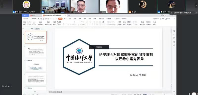 中国海洋大学法学院2020级博士研究生李凌志做了题为“论安理会对国家豁免权的间接限制——以巴希尔案为视角”的报告。李博士阐述了巴希尔案的最新进展,结合安理会在前南斯拉夫国际刑事法庭的实践,依托塔蒂奇案的裁决,寻找安理会限制国家及其官员所享有的豁免权的依据,并深入分析巴希尔案中安理会对苏丹及巴希尔享有的豁免权作出的限制,研究了安理会1593号决议的法律效力和巴希尔案的解决方法,最后对巴希尔案的争议提出了法理思考。三所高校的点评老师从选题思路、论文结构、法理概念、论文措辞等方面对论文的下一步修改做出了具有建议性与针对性的评价,使主讲人受益匪浅。