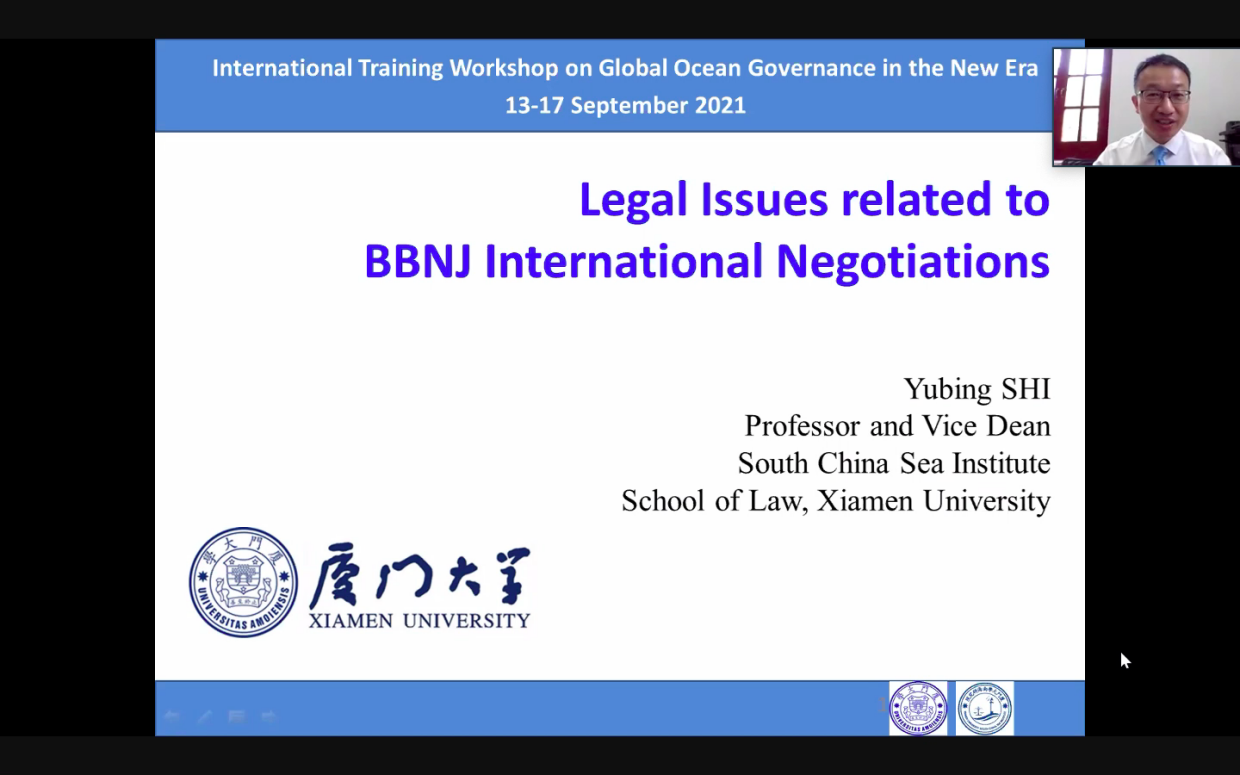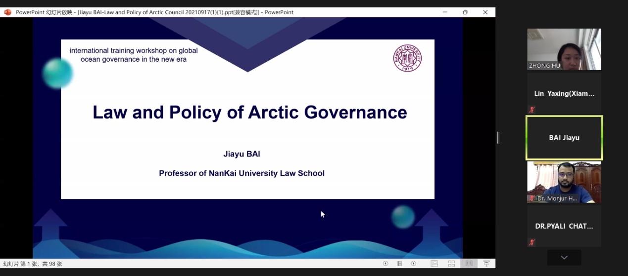 发布时间: 2021-09-20 | 阅读数:2021年9月13日至17日,自然资源部海洋发展战略研究所和厦门大学南海研究院联合举办首届“新时代全球海洋治理”国际讲习班。围绕海洋治理这一主题,讲习班邀请了八位教授担任主讲,包括自然资源部第一海洋研究所副所长乔方利研究员,大连海事大学黄渤海研究院名誉院长邹克渊教授,武汉大学国际法研究所高圣惕教授,南开大学白佳玉教授,武汉大学边界与海洋研究院蒋小翼教授,自然资源部海洋发展战略研究所副研究员罗刚博士,厦门大学南海研究院张克宁教授和施余兵教授。讲习班由厦门大学南海研究院钟慧副教授和林蓁副教授线上主持。本次讲习班共收到来自二十八个国家近两百份申请,包括相关研究智库和大学的研究人员及学生。