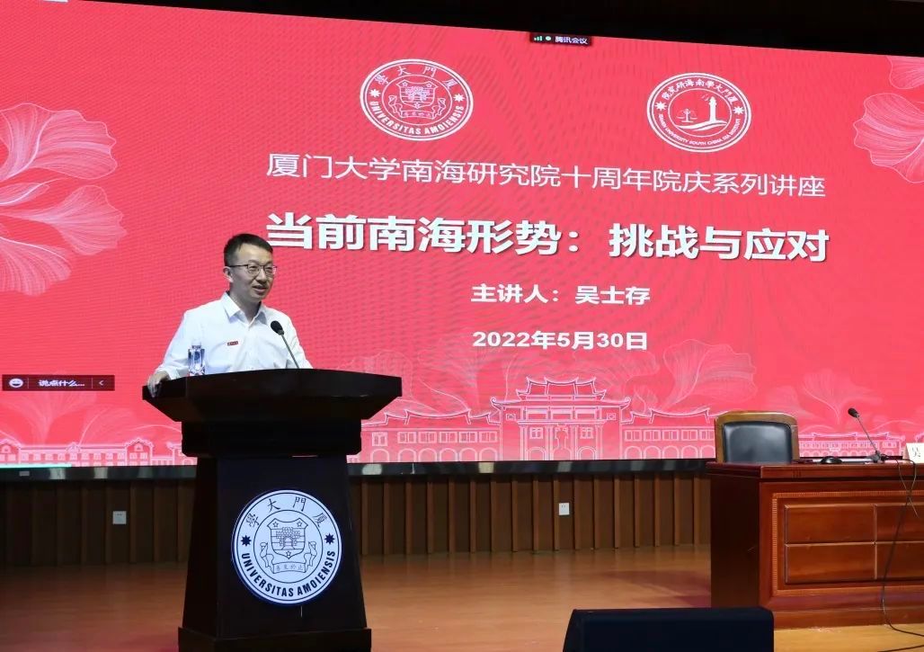 2022年5月30日下午,中国南海研究院创始院长、中国—东南亚南海研究中心理事会主席、国内南海问题权威研究专家吴士存教授在法学院模拟法庭为师生们作了题为“当前南海形势:挑战与应对”的讲座。此次讲座为厦门大学南海研究院十周年院庆系列讲座之一,吸引了两百余名师生到场聆听。