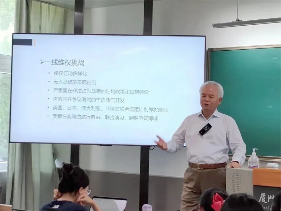 发布时间: 2023-07-25 | 阅读数:2023年7月12-20日,华阳海洋研究中心理事长、中国南海研究院学术委员会主席吴士存应邀以厦门大学讲座教授的身份为厦门大学法学院、厦门大学南海研究院本科班学生作专题授课。