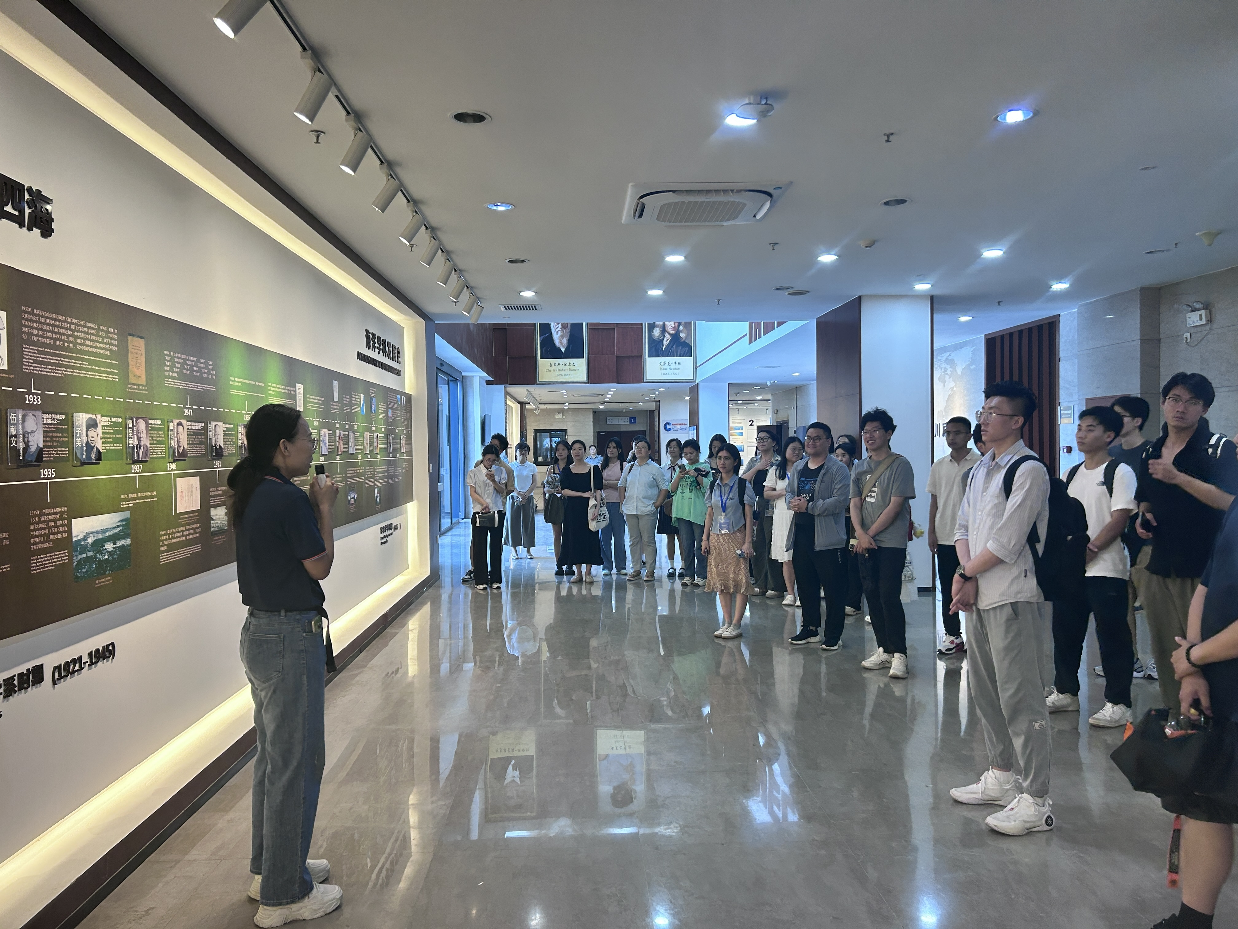 在MEL研究员的陪同和讲解下,师生们首先对厦门大学海洋学科发展史、嘉庚号机器先进装备等海洋科学研究的相关内容有了初步的了解。接着在MEL研究员的带领下,师生们参观了海上观测中心与海洋调查技术中心,通过讲解员的介绍与提问深入了解了海洋调查技术与分析技术在海洋科学研究中的应用。师生们随后参观了海洋经济生物遗传育种重点实验室,在研究员的讲解下对海洋水产育种与有了基础性了解。最后,学员们观看了MEL宣传片。