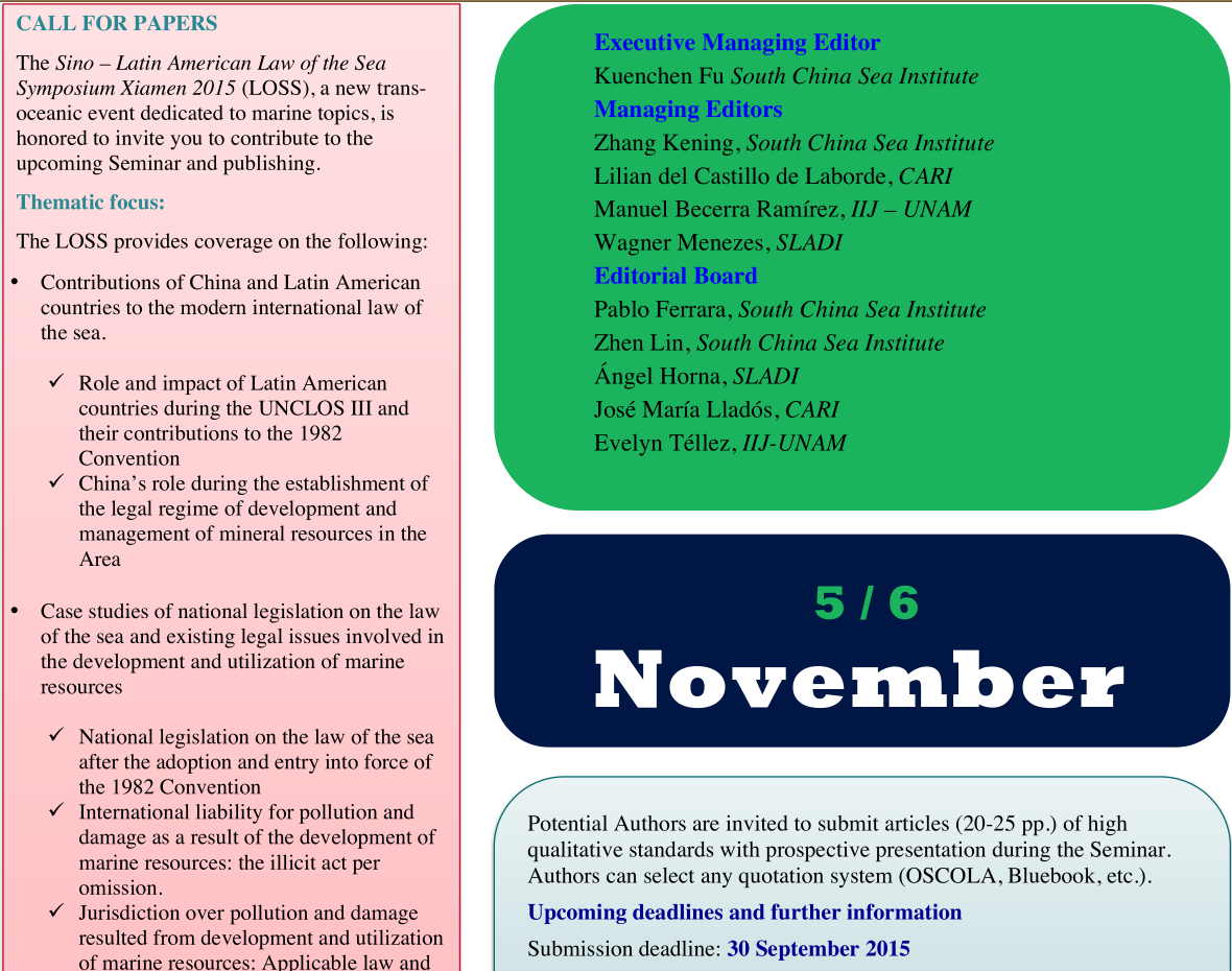 CALL FOR PAPERS:The Sino-Latin American Law of the Sea Symposium Xiamen 2015 (LOSS)