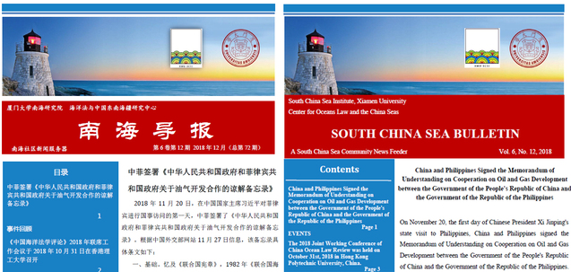【免责声明】厦门大学南海研究院、厦门大学海洋法与中国东南海疆研究中心(以下简称“出版方”)每月在网上定期发布《南海导报》(以下简称《导报》),以飨读者。《导报》主要刊登南海、东海等地区发生的涉及海洋政策与法律的最新事件和活动,本报读者则主要包括对此感兴趣的各界人士。《导报》仅以“按原样”传递信息为目的。